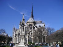 ノートルダム寺院です。ゴシック建築の代表格で、フライングバット(=飛び梁)と呼ばれる建物の外に飛び出した梁がその様式を現しています。 |